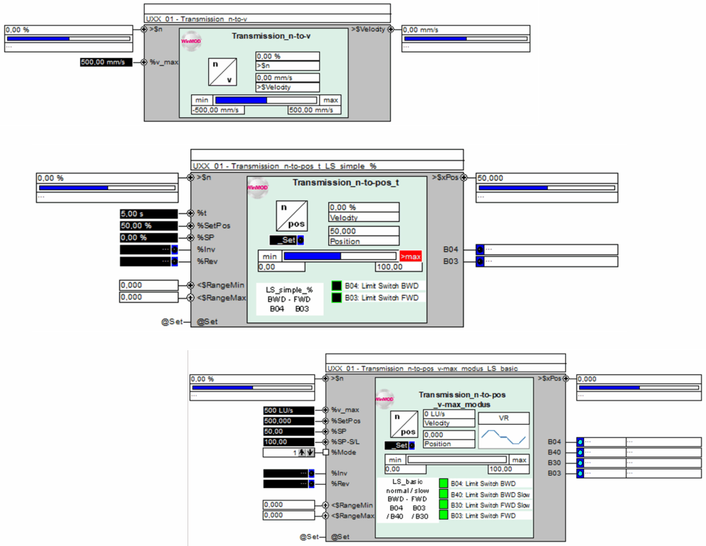 Diese Bibliothek liefern Schnittstellen zur physikalischen Simulation oder 3D-Visualiiserung. Sie übersetzen Prozent-Signale aus Antrieben in physikalische Größen wie Geschwindigkeit und Position und sorgen so für realitätsnahe Kopplung von Antrieben mit Mechaniken.