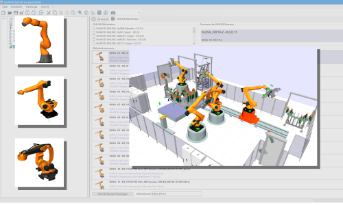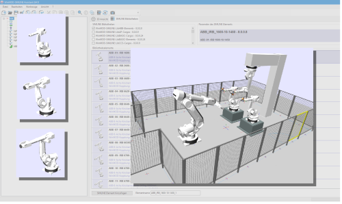 Die WinMOD-SIMLINE Roboter-Bibliotheken ABB, KUKA und Fanuc enthalten viele verschiedene Robotermodelle entsprechend der realen Vorbilder. Die 6-Achs-Knickarm Roboter bilden dabei die Basis aber auch Palettierer mit Ausgleichsmechanik oder Kleinroboter für Pick-an-Place von Kleinteilen stehen zur Verfügung. Die Greif- und Handlings-Vorrichtungen am Roboterkopf können wieder durch parametrierbare Elemente aus den Roboter-Umfeld Bibliotheken realisiert werden. Ein Anreichern der Vorrichtungen mit den individuellen 3D CAD-Daten ist jederzeit möglich. Die Stückguterfassung erfolgt wieder mit den WinMOD-SIMLINE Sensoren.
