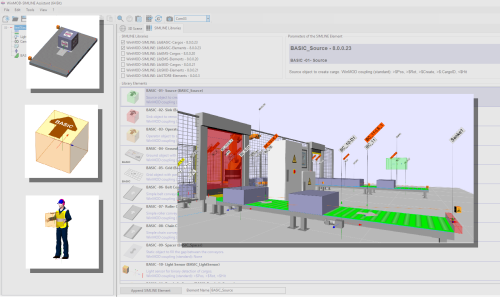 Mit den WinMOD-SIMLINE Bibliotheken werden reale Fördertechnikanlagen virtualisiert. Parametrierbare Komponenten für Fördertechnik, Sensorik und Fördergüter ermöglichen die realitätsnahe WinMOD-SIMLINE Echtzeit-Materialflusssimulation.