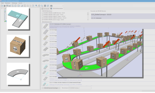 Die WinMOD-SIMLINE Bibliothek Behälterfördertechnik (CCS) dient zum Erstellen von Sortier- und Kommissionieranlagen für Behälter, Kartons und sonstige kleinteilige Güter. Neben den klassischen Rollenbahnen und Umsetzern gibt es die typischen Kurvenrollenbahnen, Gurtkurven und Staurollenförderer. Alle Elemente sind komplett parametrierbar. Neben einer Anzahl an typischen Behälter- und Karton-Transportgütern können aber auch individuelle Objekte von Flaschen über Packtrays bis zu Maschinenbauteilen integriert werden. Halt alles was man sortieren, kommissionieren und verpacken kann. Reale Förderanlagen können so absolut genau in WinMOD-SIMLINE erstellt werden. Nicht nur die realen Maße stimmen, sondern auch die mechanischen Verschränkungen und somit die genaue Anzahl an benötigten elektrischen Komponenten.
